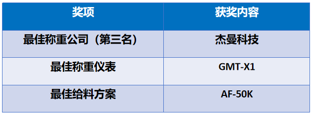 2025年5月,国际权威称重工业媒体weighing review发布年度评选结果,杰曼科技凭借gmt-x1称重仪表与af-50k包装秤单元,一举斩获“最佳称重仪表”、“最佳给料包装方案”及“年度最佳称重企业”三类奖项,成为全球工业称重领域唯一同时摘得三项殊荣的中国企业。